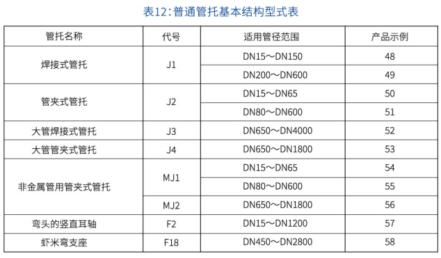 參照(zhao)HG/T21629-2021标準圖集,普通管(guǎn)托的基本結構型(xíng)式見表12。